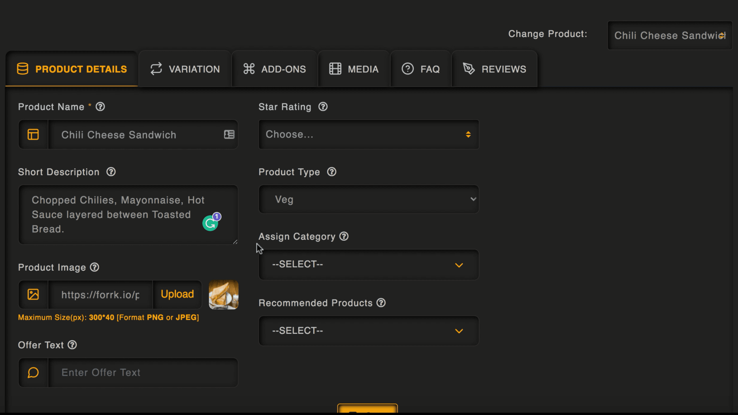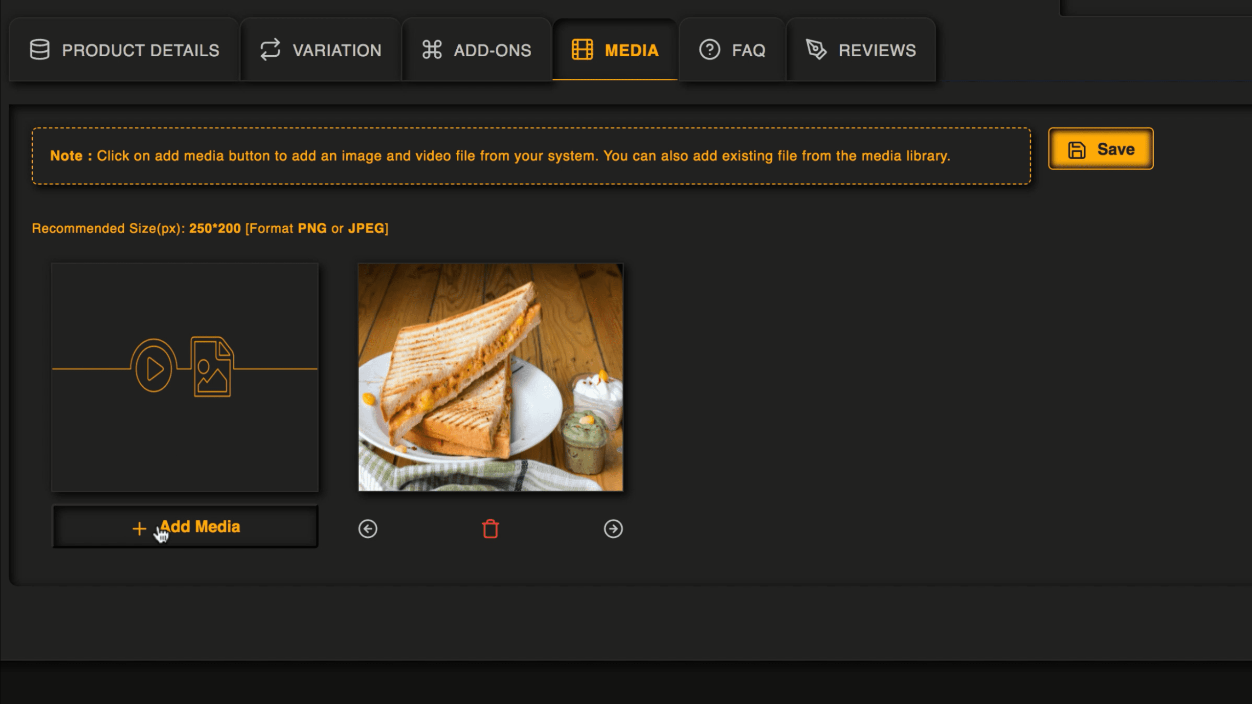 Add variations of products like ‘large’ or ‘small’ size. Plus, add on sides and customizations with ease.