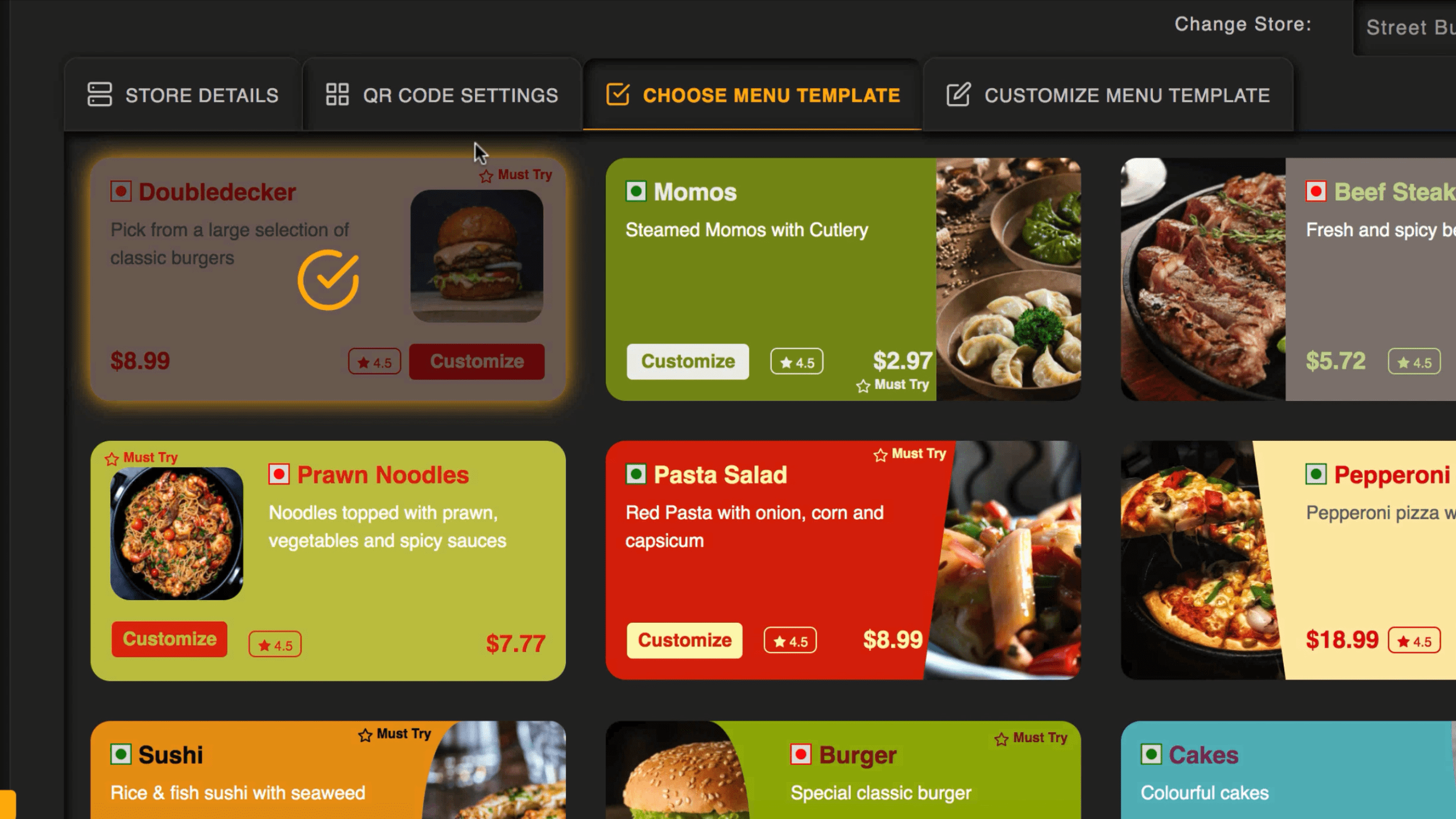 Choose from lots of DFY smart menu and product templates in many different colors and food niches. Customize everything in just a click to make your smart menus and food listings look A+ and highly professional.