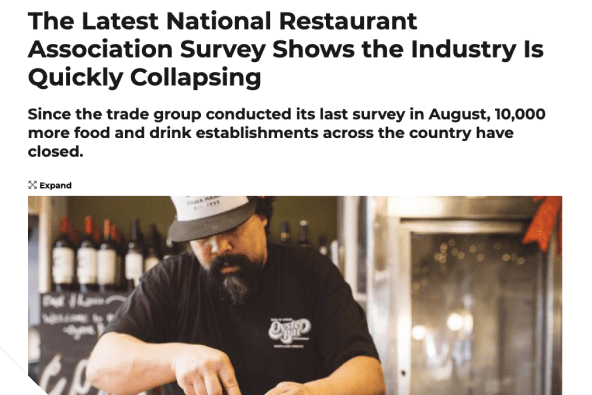 Hundreds of thousands of restaurants shut down the past several months and many more on the brink.