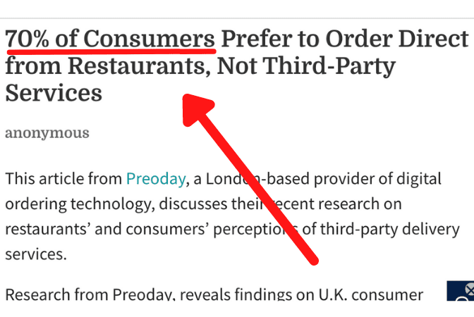 Besides, research shows that over 70% of consumers would prefer to order from a restaurant’s own app instead of these 3rd party apps!