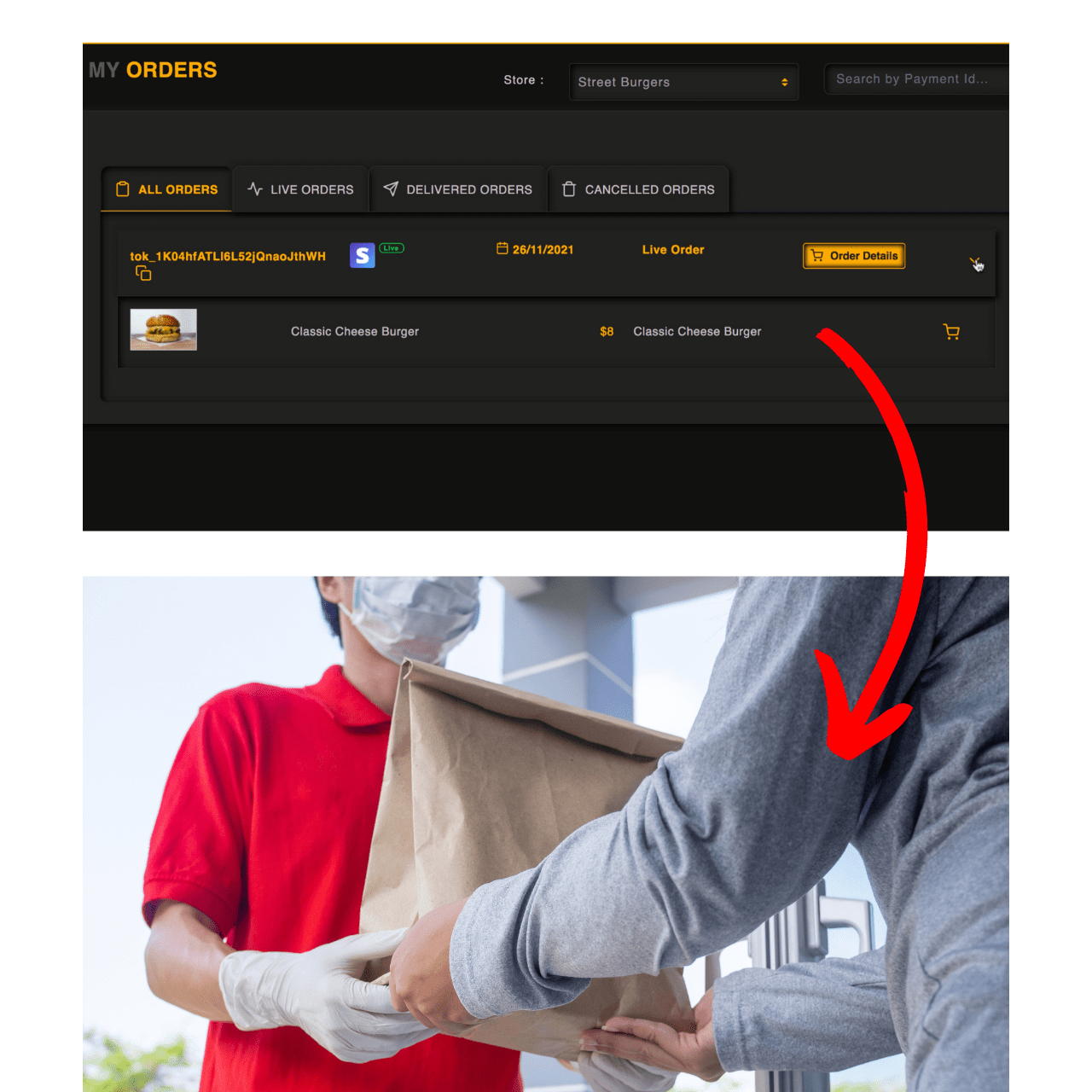 Then, integrate the client’s PayPal, Stripe, RazorPay, or other payment processor including manual pay systems to take no-contact payment. Once an order is placed, the restaruant can monitor it and even track order delivery status of mobile or pick-up delivery orders.