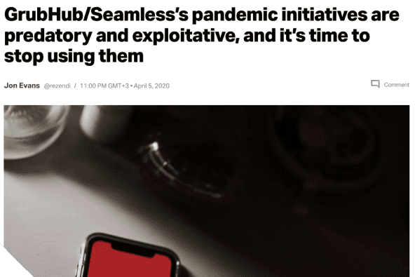 Those restaurants that have had no choice but to use GrubHub & UberEats systems are drowning in the high fees these big tech companies charge.